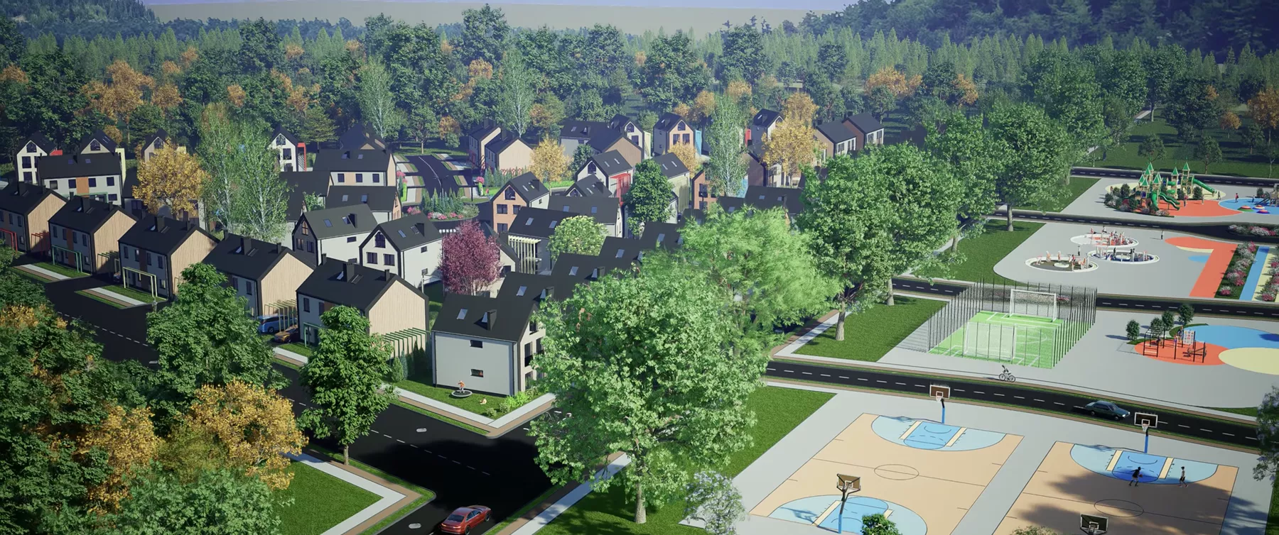 When designing the New Starbienino Estate, our aim was to create a space that, with its unique architecture and character, seamlessly integrates with the surrounding nature and the spirit of Kashubia.